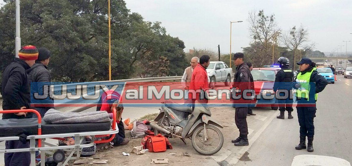Choque entre una motocicleta y auto en el ingreso de San Salvador