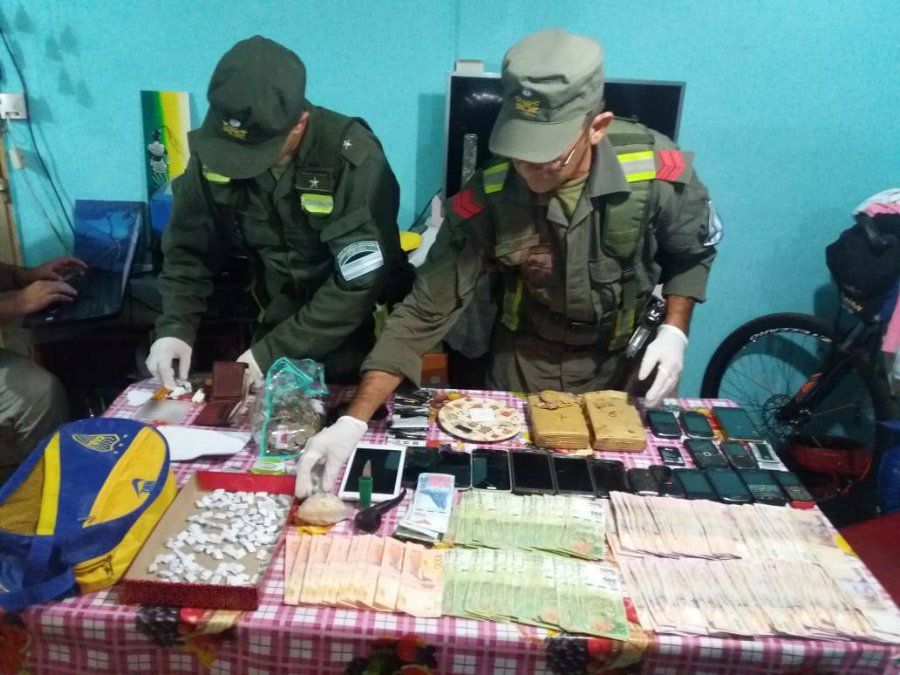De la requisa en el inmueble, los uniformados secuestraron 110 dosis de pasta base, 1 kilo 15 gramos de marihuana, equivalente a 10.150 cigarrillos artesanales, balanzas de precisión, elementos de corte y fraccionamiento, 66.500 pesos argentinos, un vehículo Volkswagen Bora, una motocicleta Yamaha y 18 teléfonos celulares.