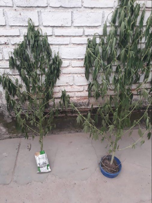Al ingresar al inmueble previo autorización de la madre del sindicado y con presencia de testigos hábiles, descubrieron tres plantines de marihuana de aproximadamente 1,50 metros de altura, un recipiente con sustancia vegetal triturada y sobre un mueble una cantidad de hojas del mismo vegetal. Por lo cual, se dio participación a personal idóneo de la Narcotráfico quienes, al efectuar el trabajo de campo arrojo positivo para cannabis sativa, procediendo al secuestro del mismo.