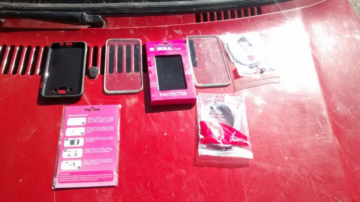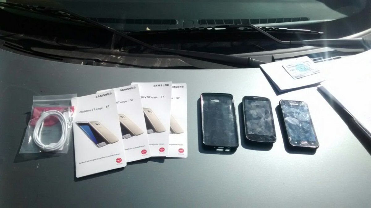 A tal efecto, se efectuó la requisa personal y de los automotores con testigos hábiles, no logrando encontrar armas de fuego, pero si celulares y maquetas en forma de celular (utilizados para la venta, simulando ser celulares), como así sticker con diferentes leyendas y otros accesorios, con fines de estafa.