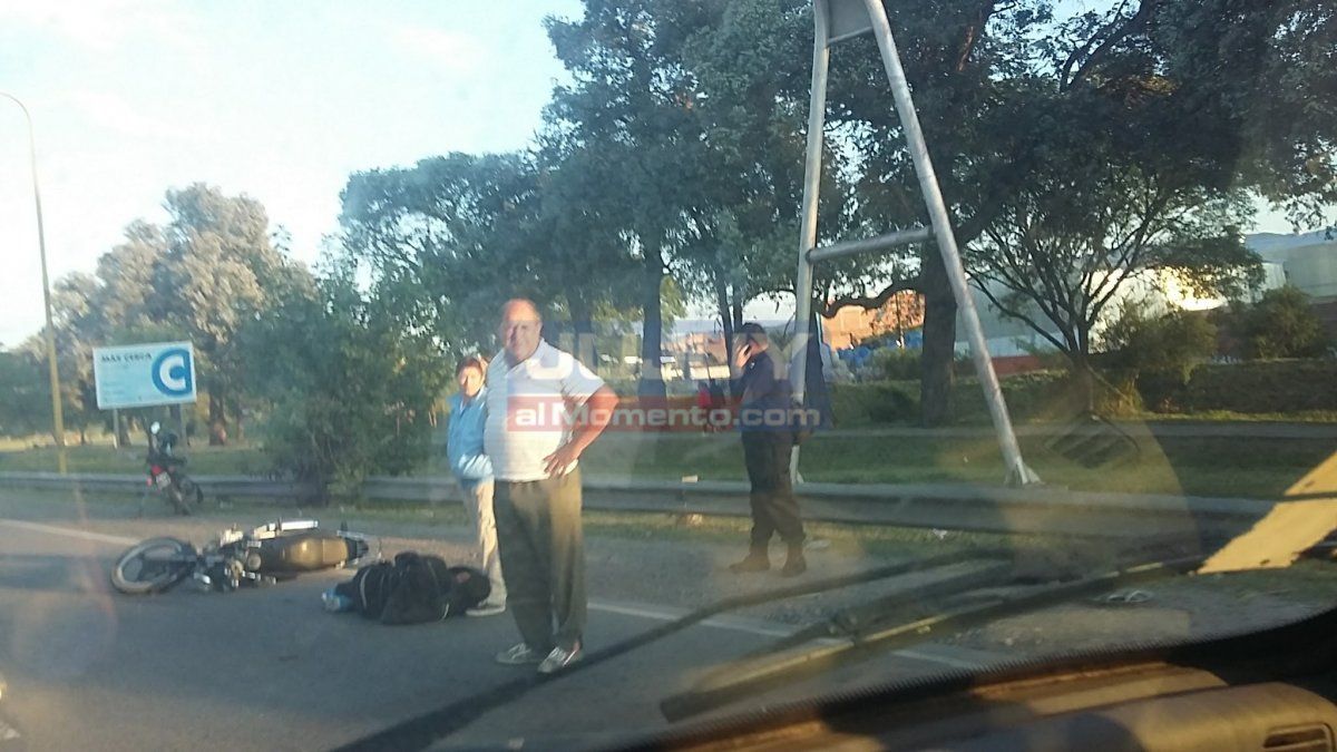 Alrededor de las 7 se registró un siniestro vial sobre Avenida Gral. Savio, a la altura casilla de turismo, por razones que se investigan un vehículo Renault 19 color blanco embistió a un hombre mayor de edad que se trasladaba en una moto, provocando que cayera sobre la calzada y resultara con algunas lesiones.