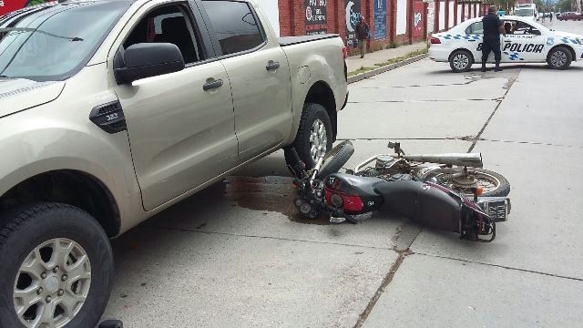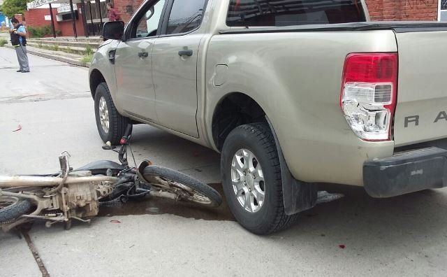 Un motociclista chocó con una camioneta Ford Ranger que frenó por esquivar un bache en Avenida Río de La Plata, frente al Club Altos Hornos Zapla.