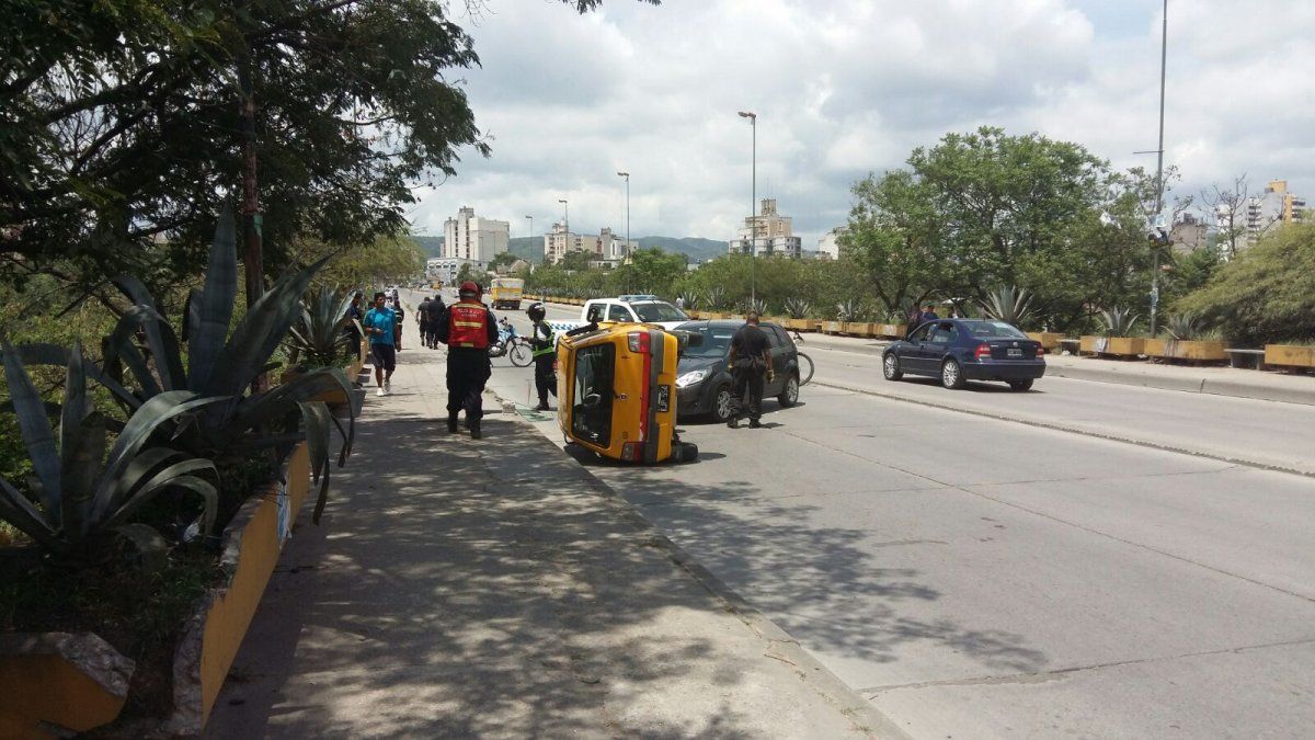El choque se produjo a las 11.55 entre un Ford Fiesta y un taxi, ambos circulaban en sentidos opuestos sobre el puente San Martín y, debido al fuerte impacto, el segundo vehículo terminó volcado sobre uno de sus laterales.