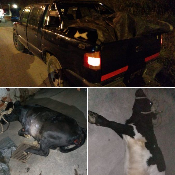 Al darles la orden de detenerse hicieron caso omiso, siendo interceptados 100 metros después. En la caja del vehículo se hallaban dos animales vacunos vivos sujetados en sus extremidades por lazos de cuero. Al no poder los inculpados justificar por qué llevaban así a los animales ni contar con la documentación personal, ni del rodado, ni de los animales, los causantes fueron llevados a la sede policial.