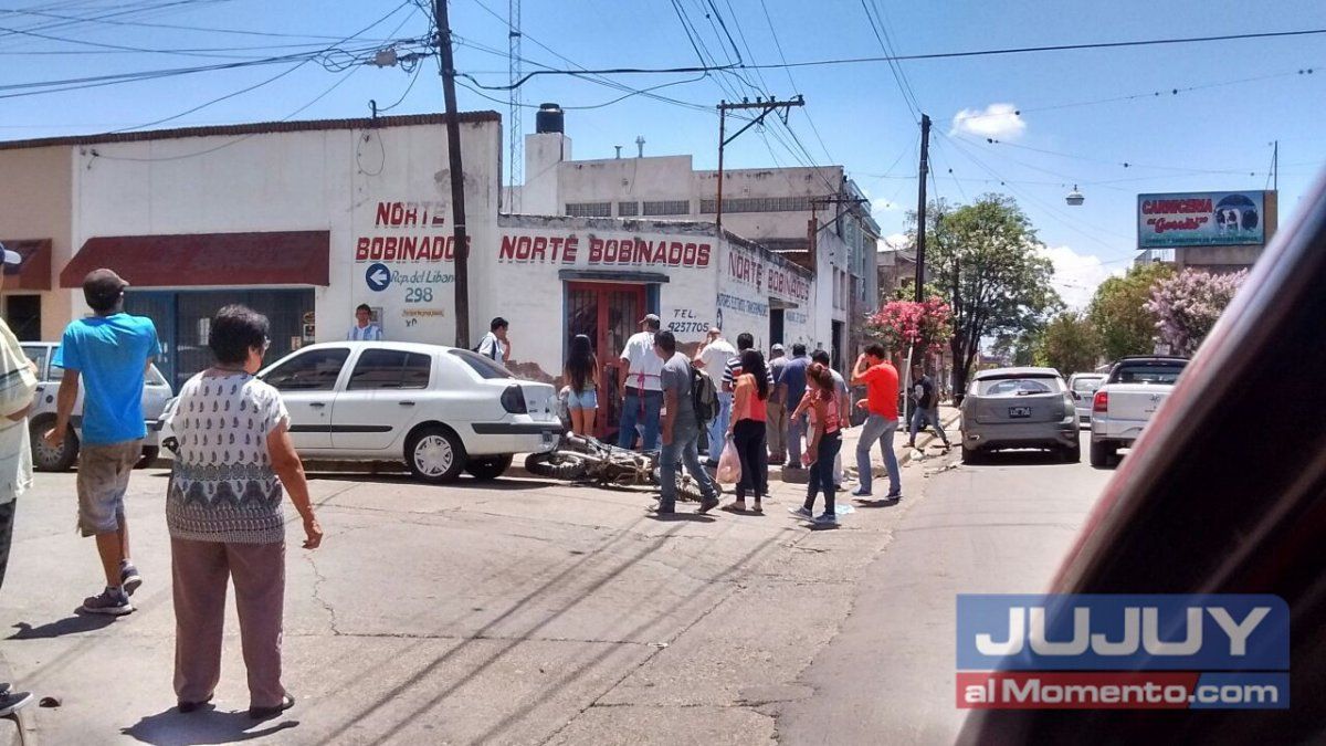 Ocurrió en horas del mediodía en la intersección de calle Gorriti y Líbano. Un hombre que circulaba en moto fue embestido por un auto.