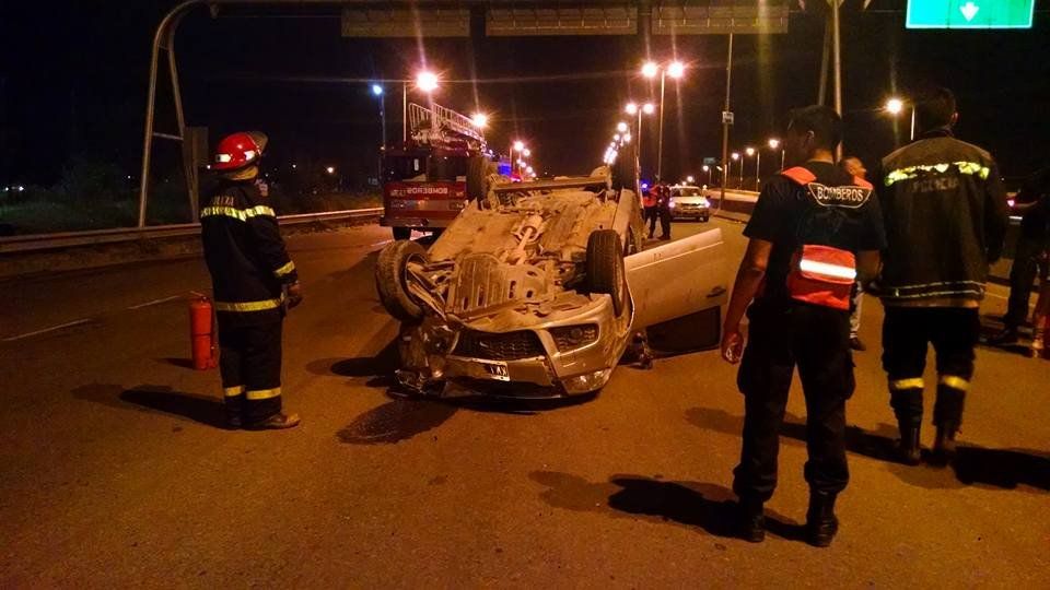 En tanto el chofer del coche intentó realizar una maniobra evasiva, pero nada pudo hacer y se produjo la colición. Varias de las personas que iban en la caja del utilitario salieron despedidas cayendo sobre el asfalto, mientras tres quedaron atrapados en la cabina de la camioneta, que quedó volcado de un costado sobre la banquina.