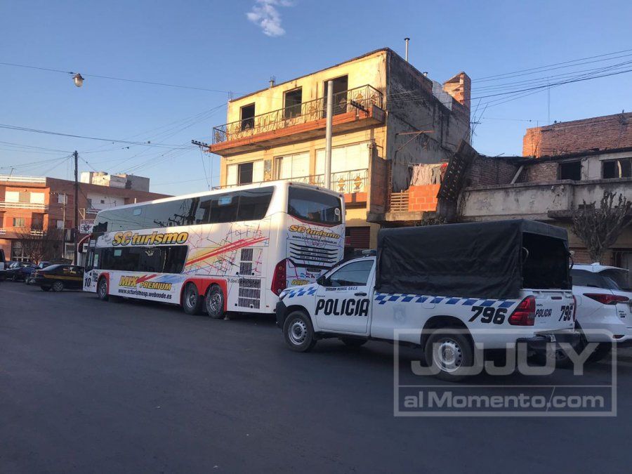 En calle Uriondo entre av. El éxodo y pasaje Tupac Amaru tuvo lugar un fuerte operativo policial a un colectivo que realiza tours de compras hacia Buenos Aires.