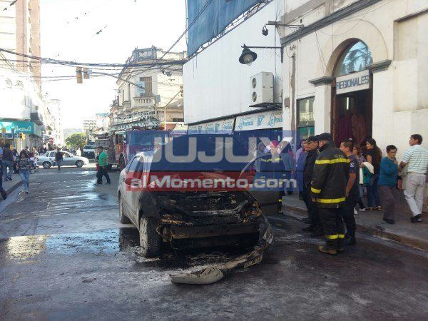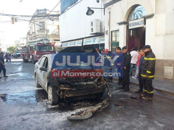 Un vehículo se incendió por motivos que todavía se tratan de establecer hace unos instantes sobre calle Lavalle, frente a la Iglesia San Francisco. La policía de la Provincia y Bomberos trabajan en el lugar. El conductor del rodado logró salir ileso de la explosión.