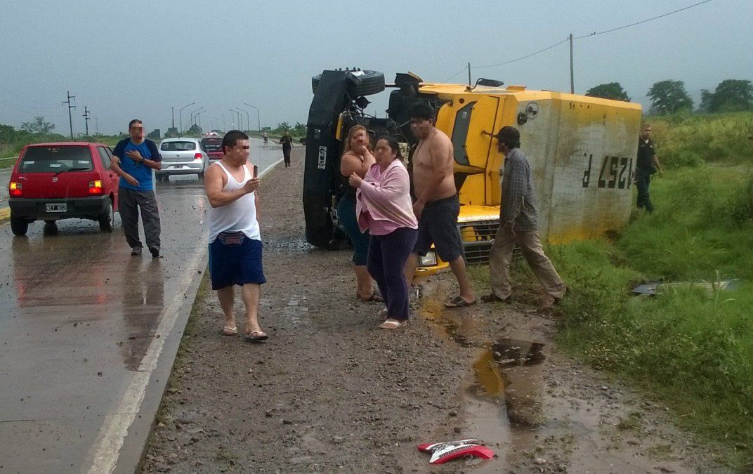 Debido a una aparente mala maniobra del conductor del pesado vehículo, impactó contra el vehículo que circulaba a su par, perdió el control y quedó volcado a la vera de la ruta.