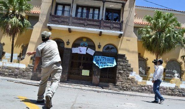 Dijo que aproximadamente a las 9.30 el personal policial que custodiaba el edificio comunal debió retirarse por los inconvenientes que son de público conocimiento y allí aprovecharon para ingresar violentamente y desalojar la sede comunal de manera violenta. “Entraron con palos, golpearon a empleados, tenían gomeras con piedras y desalojaron todo el edificio”, sostuvo, describiendo lo sucedido en la jornada de ayer.