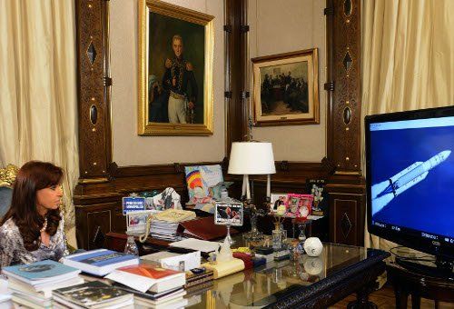 La presienta Cristina Fernández de Kirchner observó la transmisión oficial del lanzamiento desde su despacho en la casa de Gobierno y posteriormente se dirigió a todos los argentinos por Cadena Nacional.