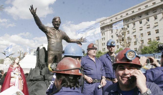 En tanto, ya se encuentra en la Plaza de Mayo, la estatua en homenaje al ex presidente, traída en caravana desde el Congreso Nacional por los mineros de Río Turbio.