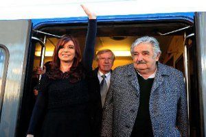 La mandataria inauguró en Salto, Uruguay, junto con su par José Mujica, el servicio ferroviario internacional de pasajeros.