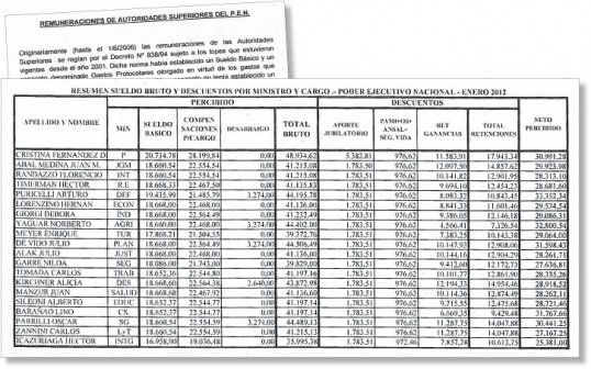 La Secretaría General de Gobierno publicó en las últimas horas una planilla que detalla el salario de la presidenta Cristina Fernández y de muchos de sus funcionarios, algunos de los cuales cobran mas que ella.