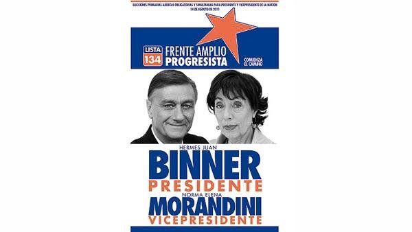 El Frente Amplio Progresista, de Hermes Binner y Norma Morandini, también llevará el azul, pero combiado con naranja. Una gran estrella, que aporta un estilo "revolucionario", resalta sobre el resto. Cerca de ella, una inscripción: "Comienza el cambio". El cuadro se completa con la foto, que ocupa todo el centro, de ambos candidatos.