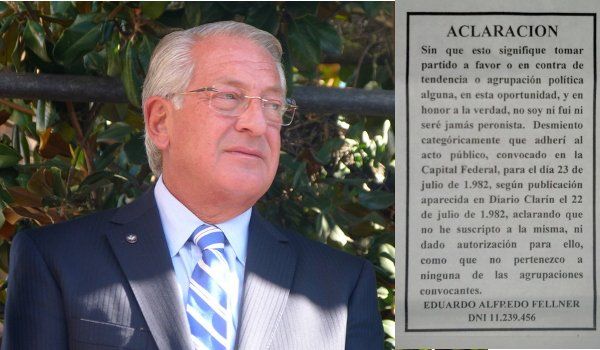 Tras una convocatoria pública, difundida en la edición del 22 de julio de 1982 en el diario Clarín, en donde se anticipaba un acto de homenaje conjunto a Simón Bolívar y Juan Domingo Perón, se hizo pública la solicitada en donde Eduardo Fellner rechazaba en forma categórica su participación en dicha actividad y dejaba sentado que nunca pertenecería a las filas de los “descamisados” de Juan y Eva Perón.