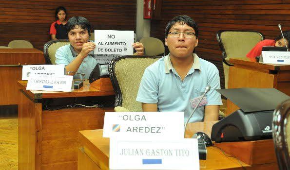 Cristian Ramos y Julián Tito, estudiantes del Colegio Olga Aredez, que pertenece a la Organización Barrial Tupac Amaru defendieron el proyecto presentado para la implementación de una tarjeta magnética universal para el transporte del ejido comunal. El mismo, según explicaron los alumnos, tenía como fundamentos tres problemas: la multifuncionalidad de los choferes de colectivos, el problema con el vuelto y la inseguridad a la que están expuestos los pasajeros en las líneas de transporte.