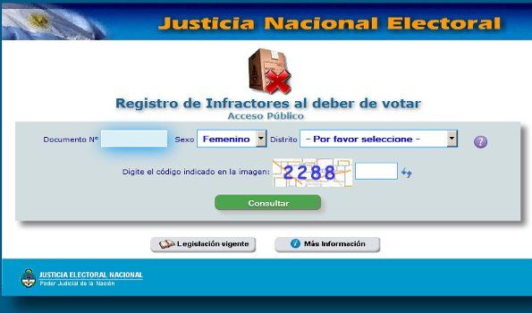El sitio web ofrece información para que cada elector "pueda verificar si se encuentra asentado como infractor y regularizar su situación o efectuar el reclamo que estime pertinente".