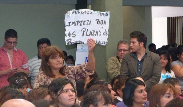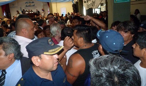 Un grupo de vecinos se congregó en el lugar para hacer sentir sus reclamos mediante cánticos, especialmente por el aumento del boleto de colectivo, por lo que el presidente del Concejo Deliberante, Carlos Sadir, debió llamar al orden para que el mandatario pudiera continuar con su discurso. Por un error, se consignó el nombre de Susana Yonny, quien no participó de los hechos.