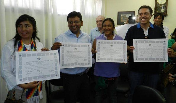 En horas de la mañana, Milagro Sala, Emilio Cayo, Germán Noro y María Ester Mamaní junto a Mabel Balconte, Juan Baigorria, José Luis Bejarano y Normando Gutiérrez, recibieron sus correspondientes diplomas del Tribunal Electoral donde son electos como legisladores provinciales y comunales.