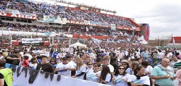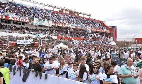 La jornada comenzó muy temprano y estuvo atravesada por un clima de festejo y alegría que se podía ver en las gradas del estadio ubicado en el barrio de La Paternal, en el campo, y en el escenario, que se poblaron de militantes con banderas y bombos que no dejaron de cantar consignas en apoyo a la Presidenta y que estallaron al entonar el himno nacional que dio comienzo formal al acto pasadas las 17.