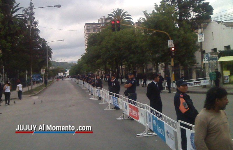 Desde temprana horas, un vallado que simulaba un camino interno se puso sobre calle Gorriti desde la puerta de la Legislatura hasta Casa de Gobierno. Luego de la jura en la Casa de Piedra, Morales transitó por ese lugar saludando a los militantes del radicalismo que fueron a vivenciar esta jornada.
