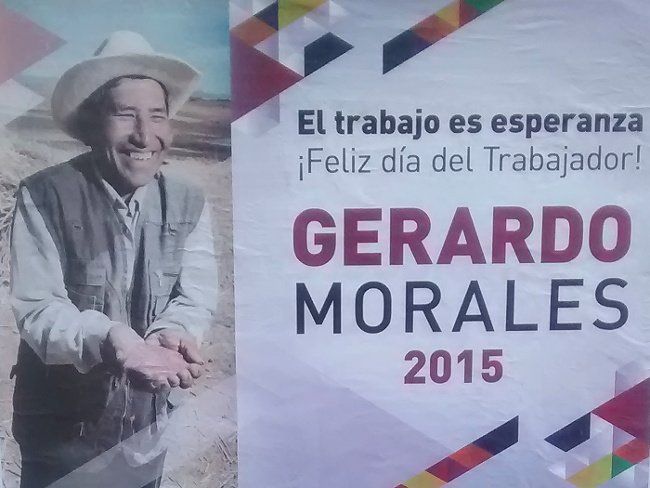 Quien no se quedó atrás fue el massista y macrista Gerardo Morales, que en pos de su campaña por la gobernación empapeló la ciudad con su mensaje: "El trabajo es dignidad, Feliz día del trabajador", por supuesto que luego viene el chivo electoral con el consabido "Gerardo Morales 2015".