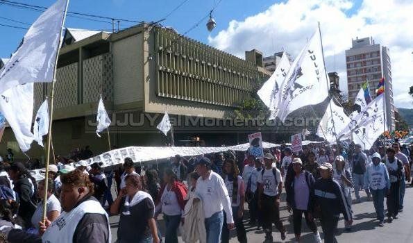 Una gruesa columna de dos cuadras llegó por calle San Martín hasta la Casa de Gobierno, y luego comenzó su marcha alrededor de la plaza portando una gigantesca bandera con las fotografías de los desaparecidos en la última dictadura militar, entonando cántico de repudio hacia el titular del Ingenio Ledesma, Pedro Blaquier.