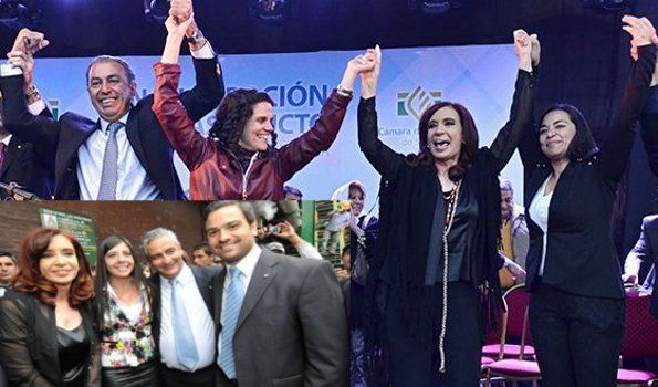 En esa oportunidad, los hizo pasar al frente del escenario, les levantó la mano y los presentó refiriendo que “estos son los candidatos del Frente para Victoria, vótenlos”, dijo la presidenta.