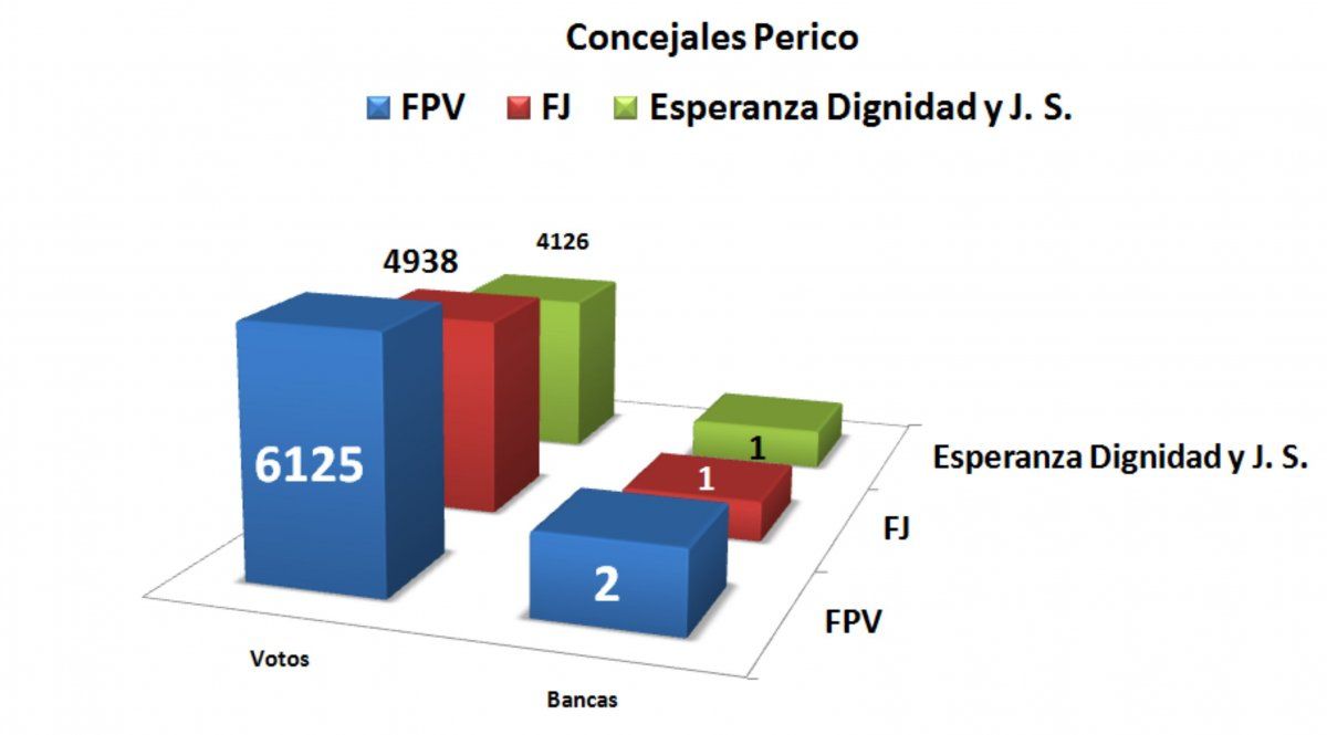 El segundo distrito que fue noticia en la jornada de ayer es Perico, que con los vaivenes de un peronismo que no tiene rumbo, no sólo le aseguró dos concejales al actual intendente, Rolando Ficoseco, sino también le dio el triunfo en la categoría diputados provinciales con un estrecho margen, 6.276 votos a favor contra 6.054 del Frente Jujeño.