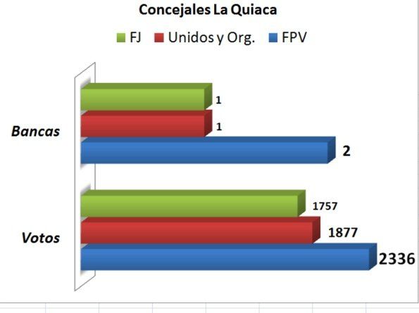 Otro distrito grande que fue protagonista de esta jornada electoral es La Quiaca, con un Miguel Tito que vuelve a la comuna fronteriza al ser electo como concejal luego de varios años de Diputado Provincial, con el Frente Unidos y Organizados con 1.877 votos.
