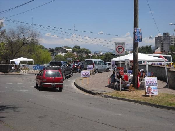 Ya que hablamos de los candidatos de los dos partidos mayoritarios, hay un dato que llama la atención y en cierta medida causa gracia. Es el hecho de ver las escasas manifestaciones proselitistas, prácticamente una al lado de la otra, como los carteles en la plaza Belgrano, uno al lado del otro, o los puestos de entrega de folletería en Irigoyen y Junín: dos gazebos separados por unos seis o siete metros.