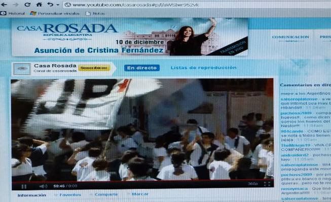 YouTube transmitió la asunción de Cristina en vivo