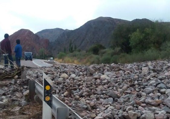 Por deslizamiento de lodo y piedra sobre calzada la Ruta 9 altura Volcán y Tilcara está cortada.