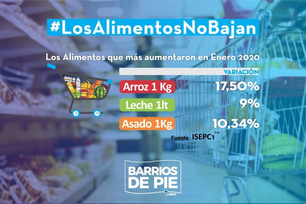 Identifican desde la organización a tres productos básicos que ocupan lugar en la mesa de los argentinos, como la leche, el arroz y el asado, como los que más incremento sufrieron.