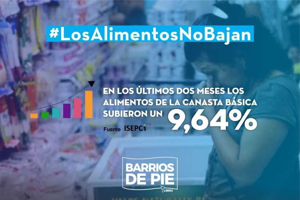 Según un relevamiento realizado por la propia organización a través del Instituto de Investigación Social, Económica y Ciudadana (ISEPCi), en los últimos dos meses el costo de la canasta básica aumentó un 9,49%.