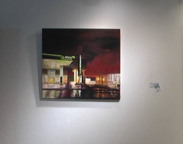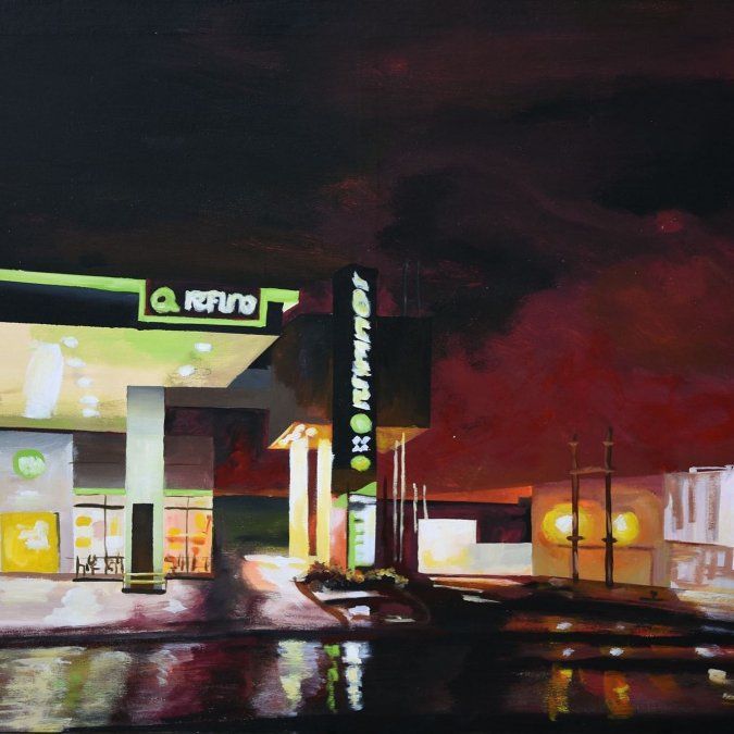 Su obra trata de un paisaje urbano donde se observa una estación de servicio vacía, siendo una de las tantas postales que dejó la pandemia, en particular la cuarentena, durante 2020.
