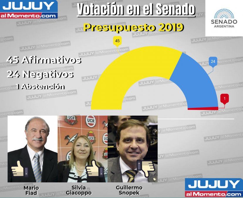 2 a favor y 1 en contra, así votaron los senadores jujeños