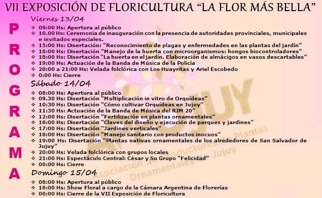 La Asociación de Productores de Plantas Ornamentales de Jujuy (APPOJUY), se prepara la tradicional exposición de floricultura, que se realiza en el Centro Cultural Manuel Belgrano. Este año tendrá lugar del 13 al 15 de abril y habrá un amplio programa de actividades.