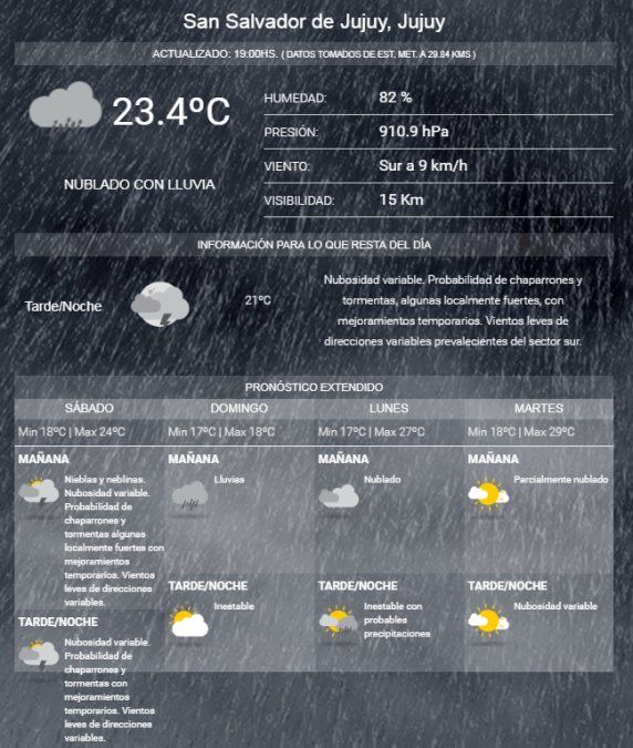 Las condiciones de inestabilidad se extienden al sábado y domingo e inclusive lunes. Recién para el martes de la semana entrante se apreciaría cierta mejora.