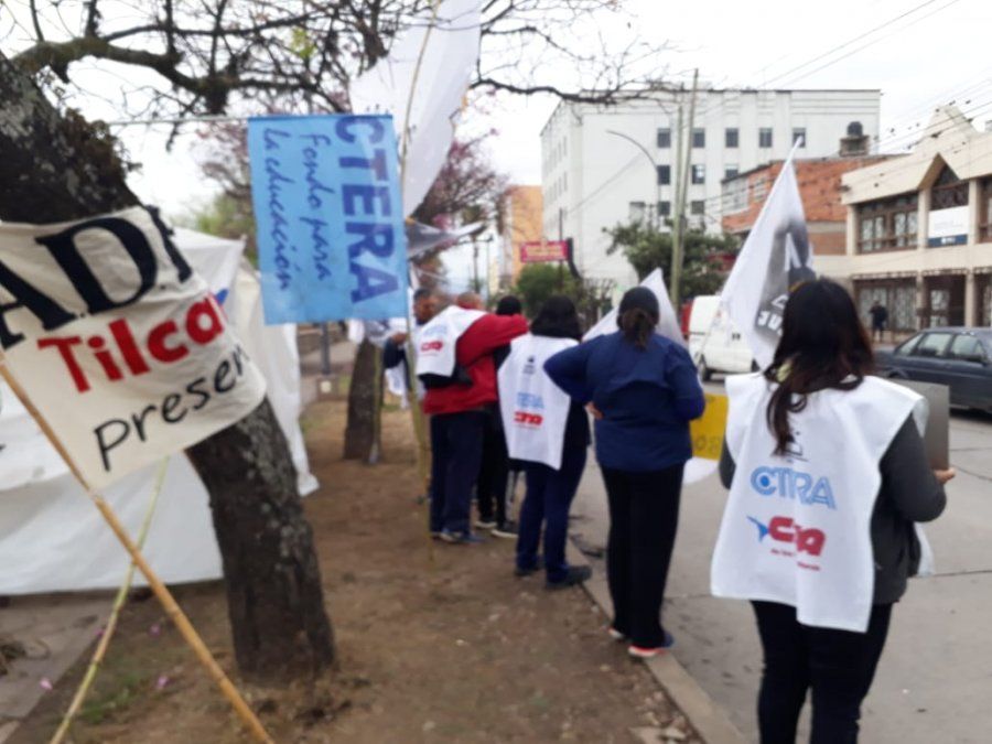 El gremio de los maestros mantiene el estado de permanencia sobre Av. Hipólito Yrigoyen, reclamando la bonificación por título y salarios adeudados desde el mes de marzo.