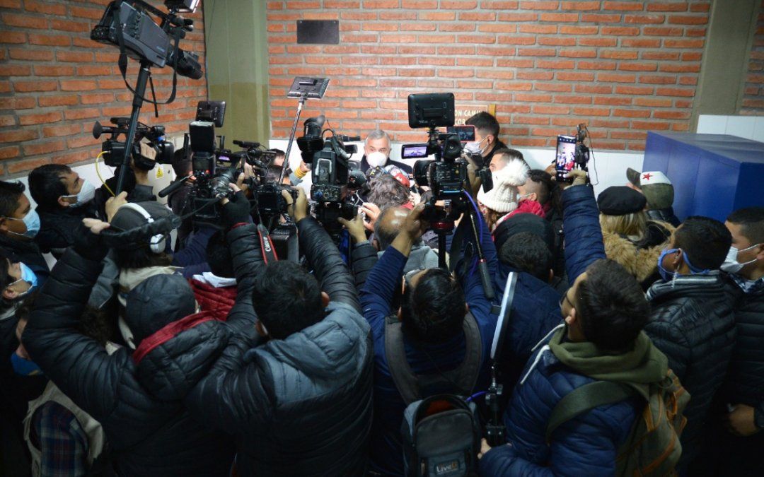 Pese a que tras emitir su voto, el gobernador Gerardo Morales destacó los cuidados en materia sanitaria que se han adoptado en los distintos establecimientos educativos, fue el propio mandatario el que formó parte de una Imagen de lo más desconcertante: toda la prensa amontonada para obtener su testimonio y ni una mención a los riesgos implícitos.