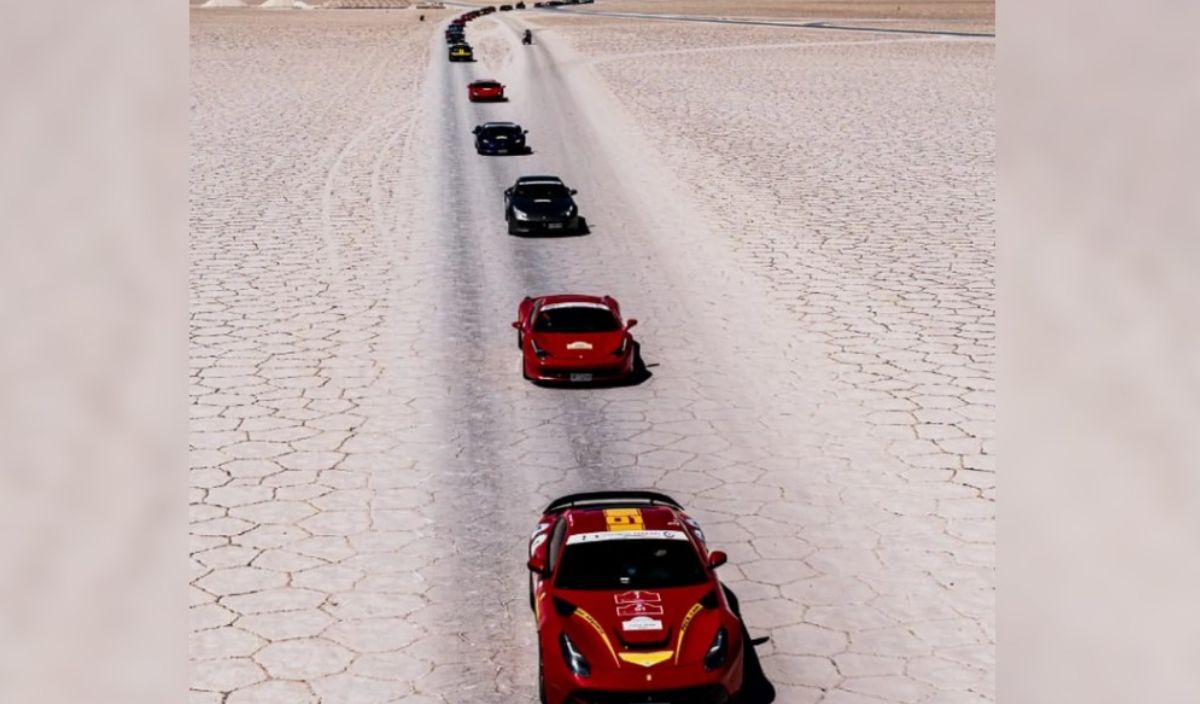 El recorrido por el norte argentino tuvo una de sus paradas más esperadas en las Salinas Grandes, donde el rojo de las Ferrari contrastó con el blanco del desierto de sal, regalando imágenes de ensueño. Más tarde, la caravana arribó a Purmamarca, cautivando a locales y turistas con su paso por el Cerro de los Siete Colores.