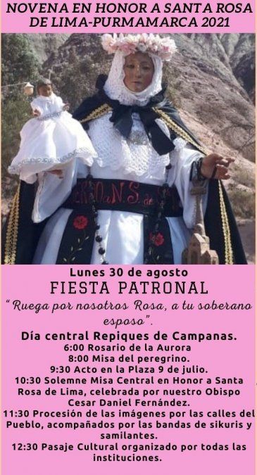 A las 10.30 será la misa central en Honor a Santa Rosa de Lima, celebrada por el Obispo César Daniel Fernández.