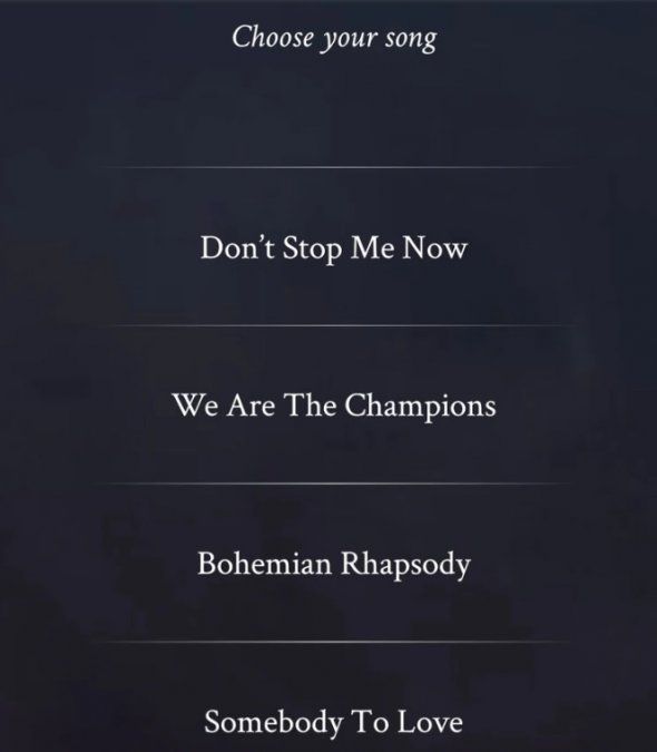 Una vez que se ingresó a la app hay que presionar donde dice “Let`s do it” y allí se podrá elegir entre cuatro canciones de Queen: Don`t Stop Me Now, We Are The Champions, Bohemian Rhapsody y Somebody to love.
