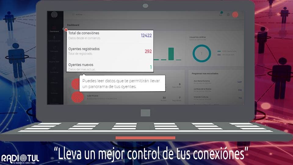La diferencia entre RadioTul y cualquier otro servicio online para estaciones de radio que hay en el mercado es el manejo de la información obtenido de la audiencia digital. El streaming, aplicación o web son solos complementos que el cliente puede optar por utilizarlo o no.