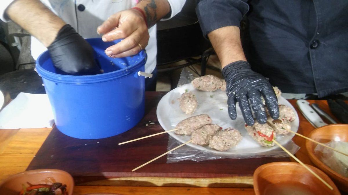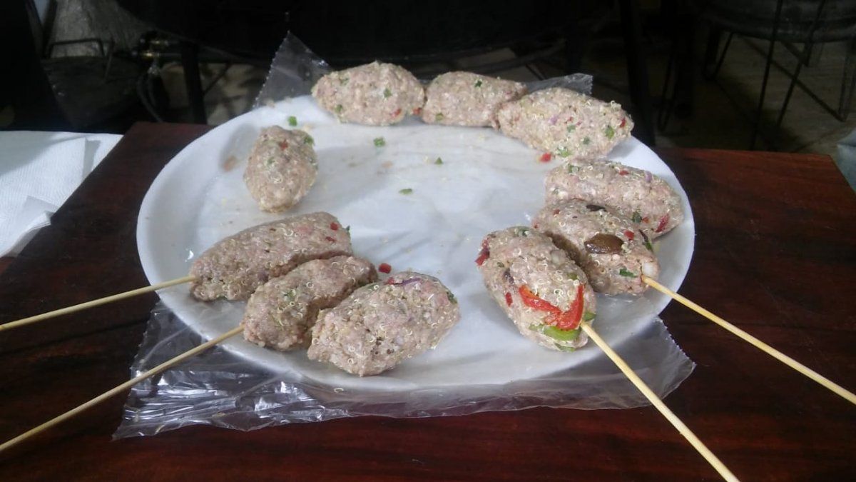 Luego agregar la cebolla, jugo de limón, la carne y amasar. Después agregar la quínoa cocida 6 minutos y volver a amasar.