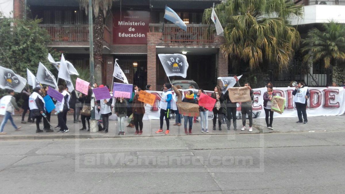 Docentes de los cuatro jardines de infantes de ADEP se congregaron en el edificio de Educación para reclamar por inconvenientes en el cobro de sus sueldos.