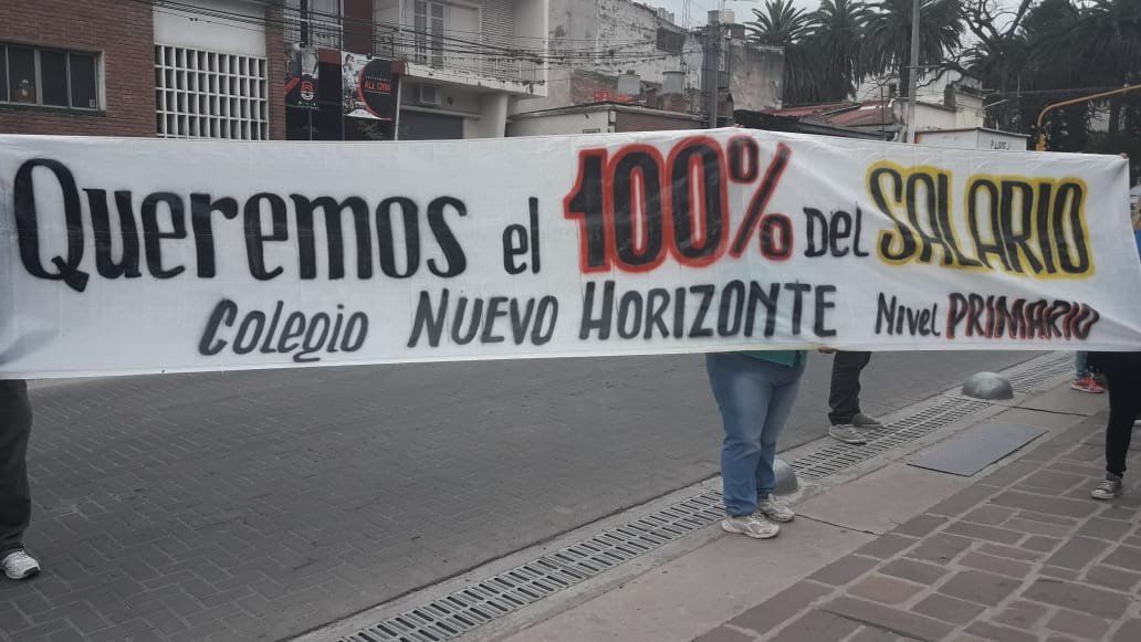 El reclamo se trasladó este miércoles a la Legislatura provincial donde estaba prevista una sesión ordinaria. Toda la comunidad educativa del Colegio Nuevo Horizonte se hizo presente para dar a conocer su situación: los docentes no cobran el sueldo y los alumnos no tienen clases