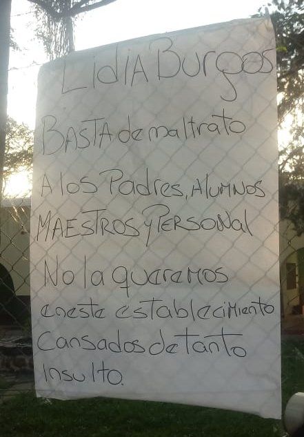 A la hora de ingreso se convocaron en la puerta de la escuela para obstaculizar el paso y exigir su renuncia, porque alegan que hay mala relación con toda la comunidad educativa.